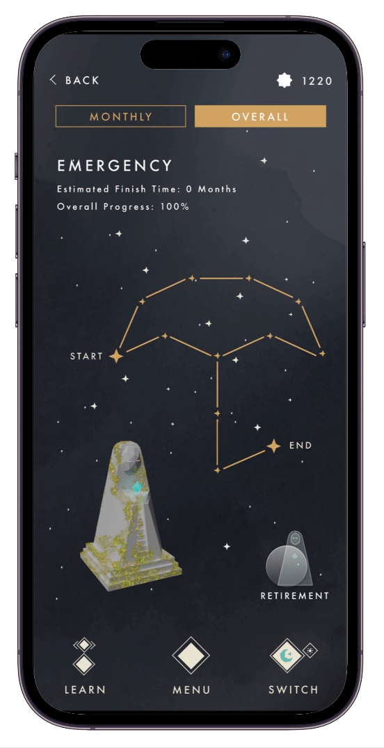 The unique "Future Path" feature lets young adults visualize savings growth and explore different saving opportunities represented as stars, making future planning personalized and enjoyable.